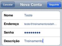 4-Insira o Nome, Endereço de Email e a senha de seu Email. A descrição é opcional.